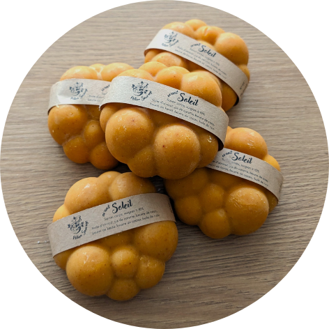 Savon corps saponifié au jus de carotte, surgras à 10% et adapté pour préparer la peau au soleil.