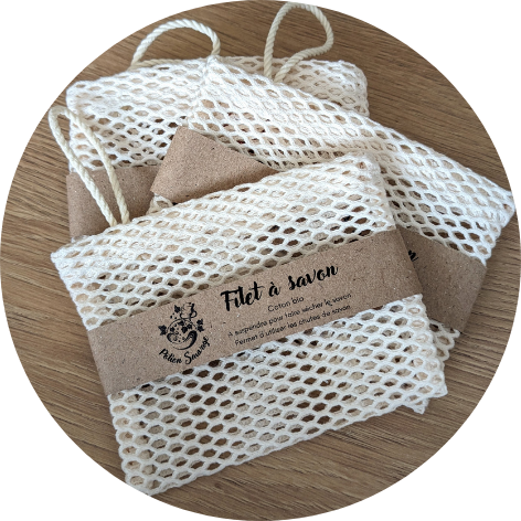 💡 Conseil d’utilisation : glissez vos restes de savons dans le filet, humidifiez et frottez directement sur la peau.