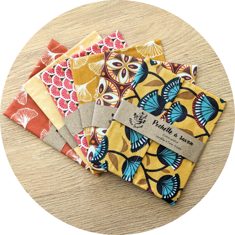 Une jolie pochette en tissu imperméable et lavable, idéale pour transporter vos savons solides en voyage, à la salle de sport ou en week-end, tout en protégeant le reste de vos affaires.