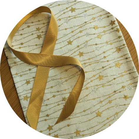Une pochette peut contenir entre 3 à 4 savons. Nouée avec un ruban en tissu doré, cette pochette pourra ensuite être réutilisée, pour un nouveau cadeau ou pour ranger du petit matériel.